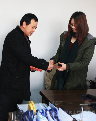 总经理张炎良向员工拜年并发放红包