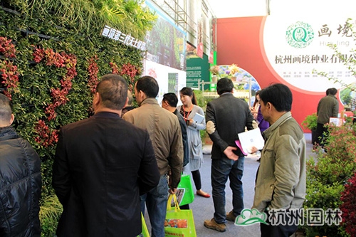 展位的一侧安装了一块2米多高的绿墙,使得这块地方着实热闹,好奇的观众纷纷向工作人员咨询。在工作人员的介绍下,许多人都对这种干净、美观又省心的无土绿墙产生了很大兴趣,还有很多业内同行表示愿意与画境一起合作,将立体绿化推向更多的客户。