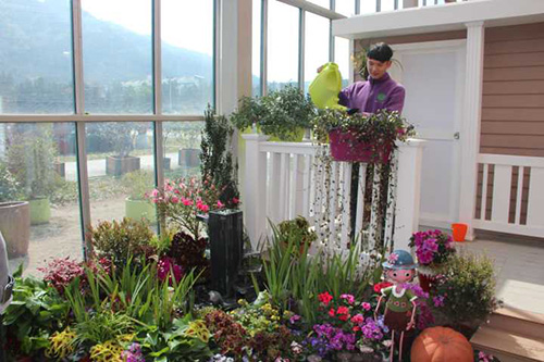 在园艺中心选购打造一米花园所需的园林小品、植物材料及其他辅材。