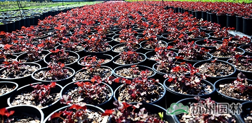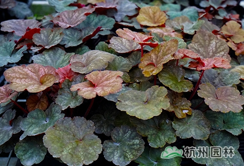 目前长势较快的矾根、铁筷子、岩白菜、大黄属植物等均已陆续展叶、开花。其中矾根喜半荫,花期4-10月,叶片色彩丰富,有的品种叶背面色彩也相当艳丽,且叶片颜色会随季节、环境和温度的变化而变化。矾根多用于林下花境、地被、庭院绿化,是理想的宿根花境材料。目前杭州园林已建立了多个矾根品种的的组培快繁技术体系,为其产业化生产打下坚实的基础。