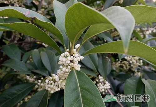 “浙江园”里应用的桂花品种以丹桂和银桂为主,共计50余棵,包括大乔木和小球类。为保证开园期间的观赏效果,这些桂花被提前运送至银川,利用当地的低温环境诱使其完成花芽分化,终于在九博会开园时营造出了桂花满树、满园飘香的氛围。