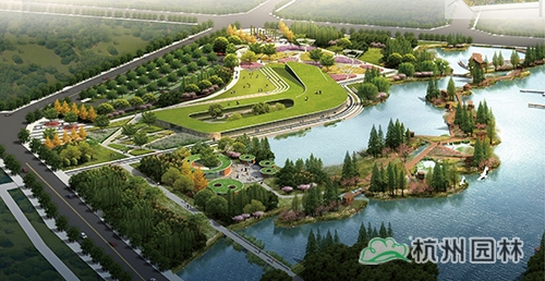 乐活园艺主题区:以家庭园艺花园为主,是公园的圩田湿地体验中心,水道如巷,河汊如网的圩田农艺景观,呈现出田园牧歌般的意境。包含飘带走廊、水荡花田等景点。