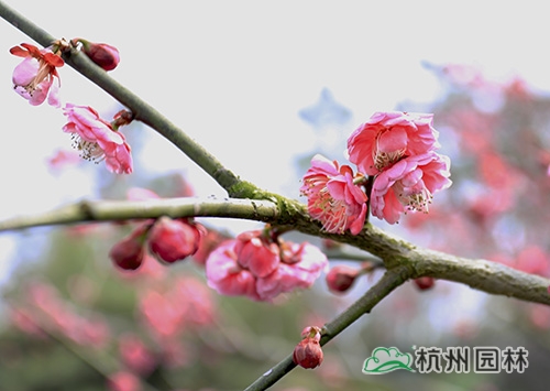 作为中国十大名花之首,梅花与兰花、竹子、菊花一起列为四君子,与松、竹并称为“岁寒三友”。在园林应用中,传统的配置方法也常与之配植成景。