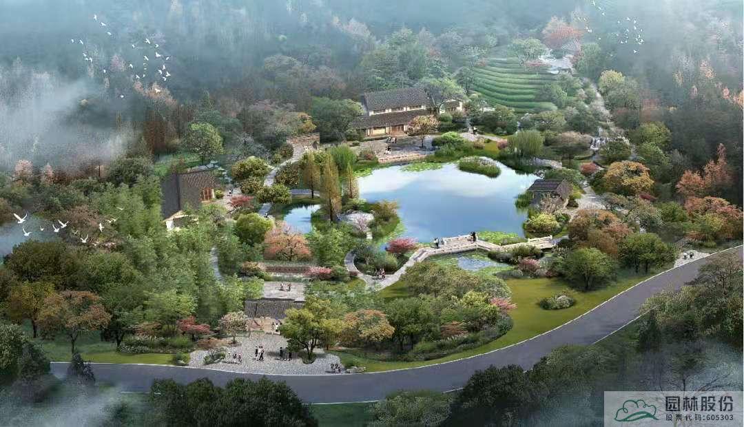 问茶片区:登高揽胜、探源寻溪,通过茶田、溪瀑、听泉亭等景观元素,展示西湖人家问山、问水、问茶的游赏情致。