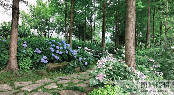 分割成滨水、林下等多种空间,与绣球形成不同互动;