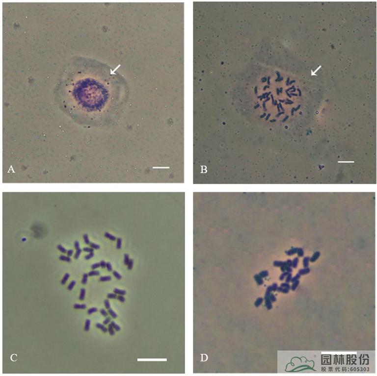 绣球联盟理事长单位开云网页版登录入口(浙江园林资源与环境技术研究院)与南京林业大学(林木遗传与生物技术教育部重点实验室),联合开展绣球染色体制作和定位研究,并成功建立绣球‘无尽夏’根尖高质量中期染色体制备及rDNA物理定位技术体系,这一体系可高效确定绣球属植物的染色体数目及rDNA的分布,可为绣球属资源鉴定、杂交育种的亲本选配提供参考,从而指导绣球属植物的杂交育种实践。本研究在国家自然科学基金项目( 31670603)、上海市绿化和市容管理局科研项目( G212410)、上海市科学技术委员会科研项目 (19DZ1203503)等项目的资助下完成。研究成果论文已在《林业科学》2021年第57卷11期杂志发表。