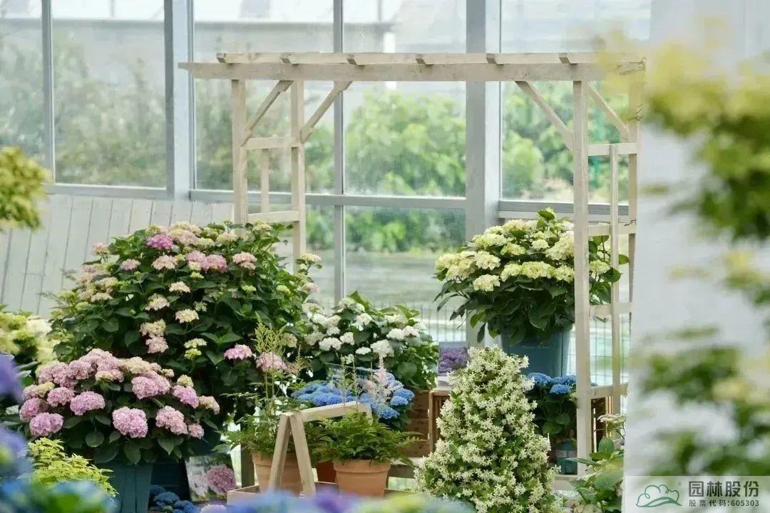 此次花展除了展出‘无尽夏’、‘花手鞠’、‘玉段花’、‘落跑新娘’等经典大花绣球品种,还展出了近年来从日本、欧洲进口的绣球品种,共计有近百个品种、数千株绣球花。值得一提的是,除了主角绣球花,本次花展还展出了一百多种月季花,并将枫树、玉簪等花卉园艺产品运用到花境中,突破性地结合桐乡特色乌篷船、蓝印花布等元素进行展示。同时,本次花展还首次尝试将室内展和户外展相结合,力求给大家带来不一样的视觉感受。