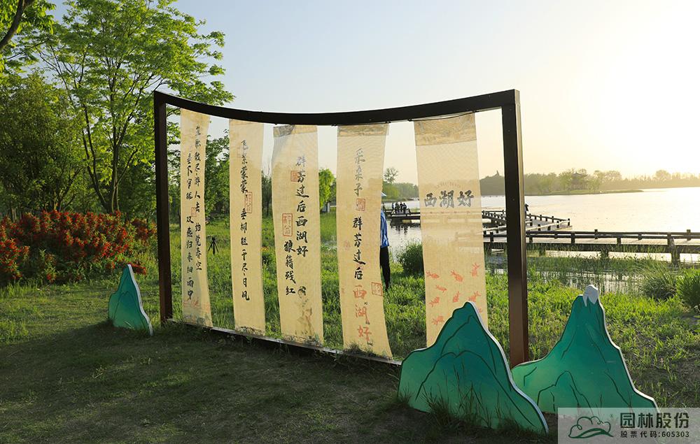 与花草树木相伴,与文化携手同行。从植物选择到建筑风格,从写满诗词佳句的景观小品到生动形象的各类雕塑……文化融于风景,风景映衬文化。缓步慢行间,那些穿越时光而依然鲜活的人物故事,那些历经千年而依然惊艳的诗词佳句,为眼前的风景增添了更多人文雅韵。岁月变幻,沧海桑田,颍州西湖虽随时代变化,但文化却历久弥新。这幅集自然画境与文化意境的山水画卷,是景观再生与历史延续的有机融合,展现出新时代颍州西湖的新特色、新风貌。