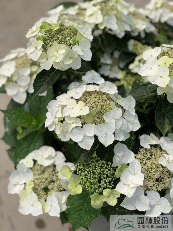‘落尘’和‘落雪’是大叶绣球‘魔幻翡翠’×中国绣球种间杂交新品种。种间杂交的难度要远远大于种内杂交,项目通过胚拯救和无菌播种技术,攻克了种间生殖隔离等难题,获得了少量优质的变异后代。该品种最大的特性是继承了中国绣球耐高温和抗病虫害的特性,非常适合江南地区的园林景观露天栽培应用。