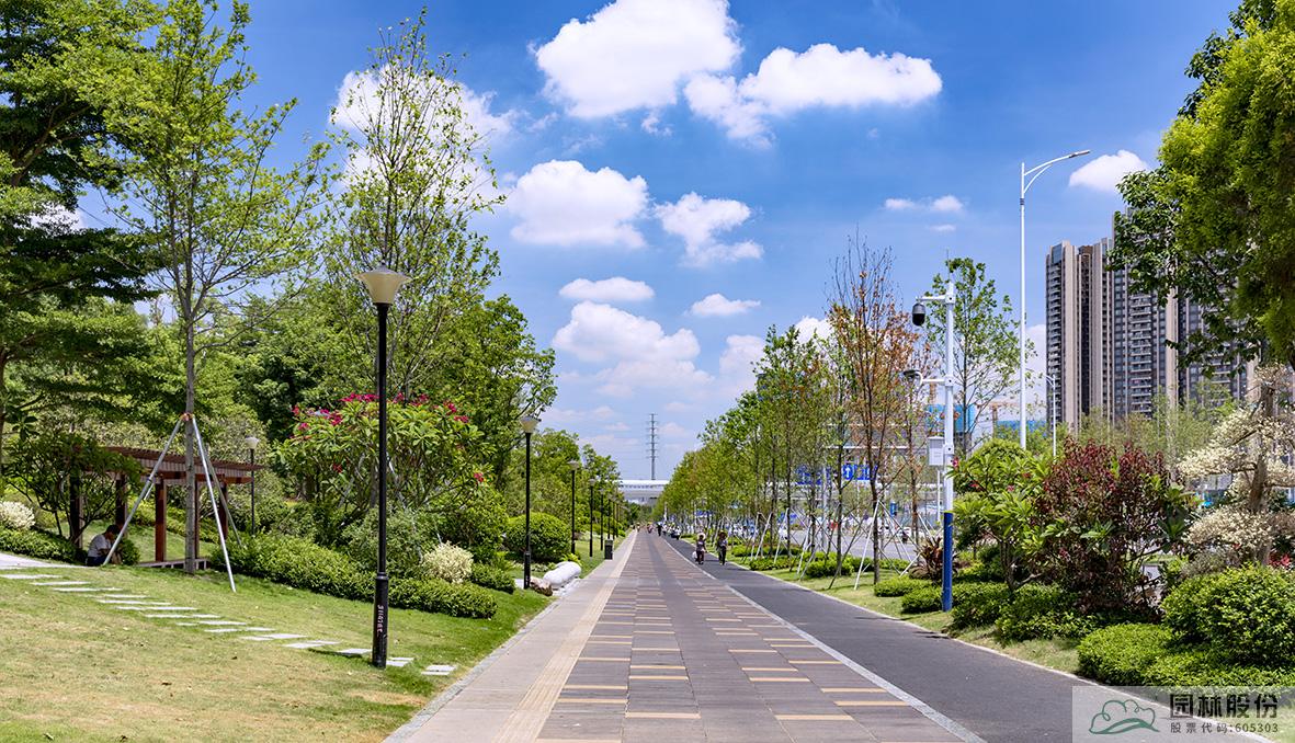 凤举路(光源四路至光明大道段)绿化景观提升项目位于深圳市光明区凤凰街道,南靠龙大高速,中部与创投路相交,临近龙大高速一侧现有绿化隔离带。项目建成后,集南国风光的大气与江南园林的秀美与一体,地势起伏有致,植物合理搭配,既有开阔通透的园路,也有曲径通幽的竹林;旱溪蜿蜒灵动,生态功能与景观功能共存,原木连廊亭榭,自然与艺术融合,塑石假山与堆坡造型相得益彰,人入其中,步移景异,让人流连忘返,舒适愉悦。